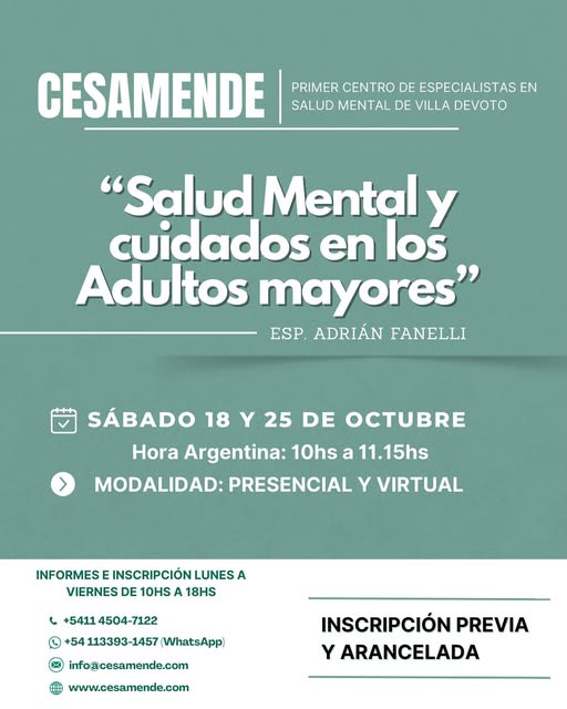 "SALUD MENTAL Y CUIDADOS EN LOS ADULTOS MAYORES" - Esp. Adrián Fanelli.