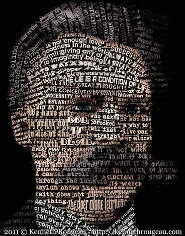 Imagen*: Kenneth Rougeau es un artista digital de EEUU. También desarrolla collages y utiliza técnicas mixtas. Se destaca su serie de retratos tipográficos llamada TypeFace que ilustra a personajes famosos de toda la historia con sus propias palabras. Reside en Portland, Oregon.